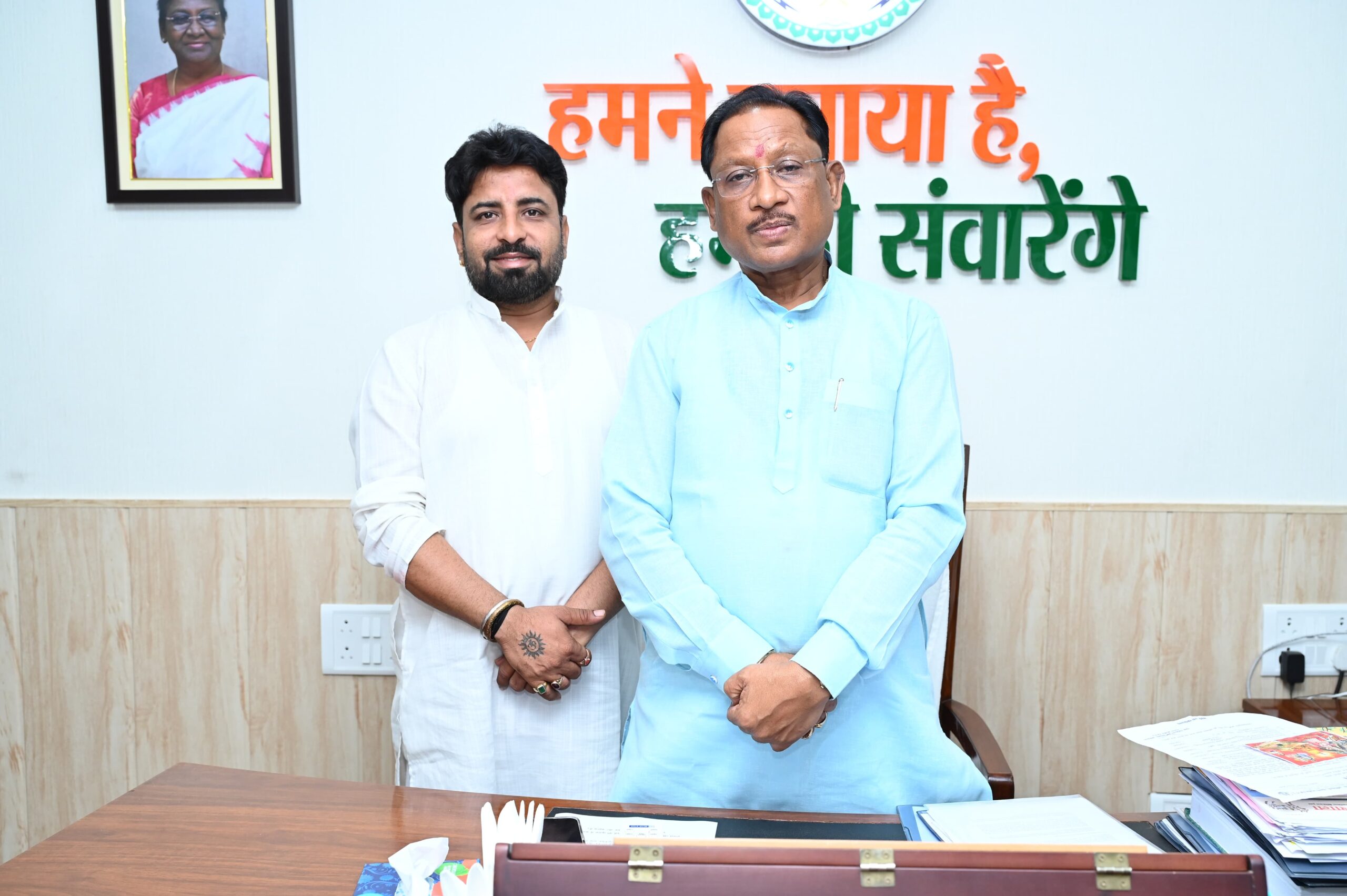 कार्यक्रम में छत्तीसगढ़ के युवा, कृषक, महिला और प्रबुद्धजनों के साथ विकसित भारत और विकसित छत्तीसगढ़ को लेकर परिचर्चा में मुख्यमंत्री साय ने ड्रोन दीदी को लेकर आए प्रश्न का उत्तर देते हुए कहा कि भिलाई में तकनीकी विश्वविद्यालय में ड्रोन दीदी योजना के अंतर्गत ट्रेनिंग की व्यवस्था की गई है। प्रधानमंत्री नरेंद्र मोदी ने 3 करोड़ लखपति दीदी बनाने का आह्वान किया है, जिसमें ड्रोन दीदी का भी अहम योगदान होगा। मुख्यमंत्री ने पद्मश्री जागेश्वर यादव की तारीफ़ करते हुए कहा कि जागेश्वर जी पढ़े-लिखे नहीं हैं, उन्हें साइकिल चलाना नहीं आता, हाफ पेंट पहनकर और बिना चप्पल के अपना काम चलाते हैं लेकिन आज इन्होंने कोरवा-बिरहोर समुदाय की सेवा में अपना जीवन समर्पित कर दिया है, मैं उनका अभिनन्दन करता हूं।