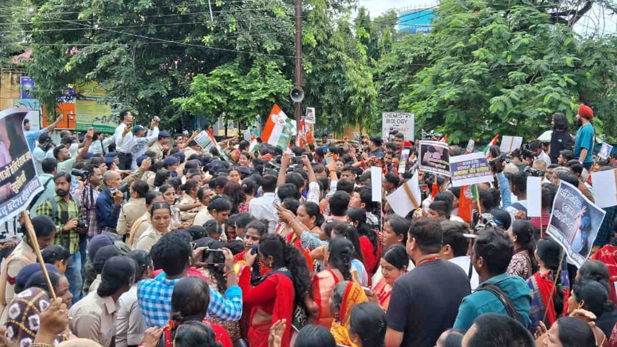 प्रदर्शन में मौजूद प्रदेश कांग्रेस अध्यक्ष दीपक बैज ने कहा कि आज लाल साड़ी पहनकर दुर्गा के रूप में सरकार पर क़हर बरपाने हमारी माताएं-बहनें पहुँची हैं. नौ महीने की सरकार ने पूरे प्रदेश को बर्बाद कर दिया. माताएं-बहनें सुरक्षित नहीं हैं. कांग्रेस पार्टी ने लगातार मुद्दा उठाया. आपको जनता ने सरकार चलाने का जनादेश दिया, लेकिन इस सरकार में सरकार नाम की चीज नहीं है, कानून नाम की चीज़ नहीं है.